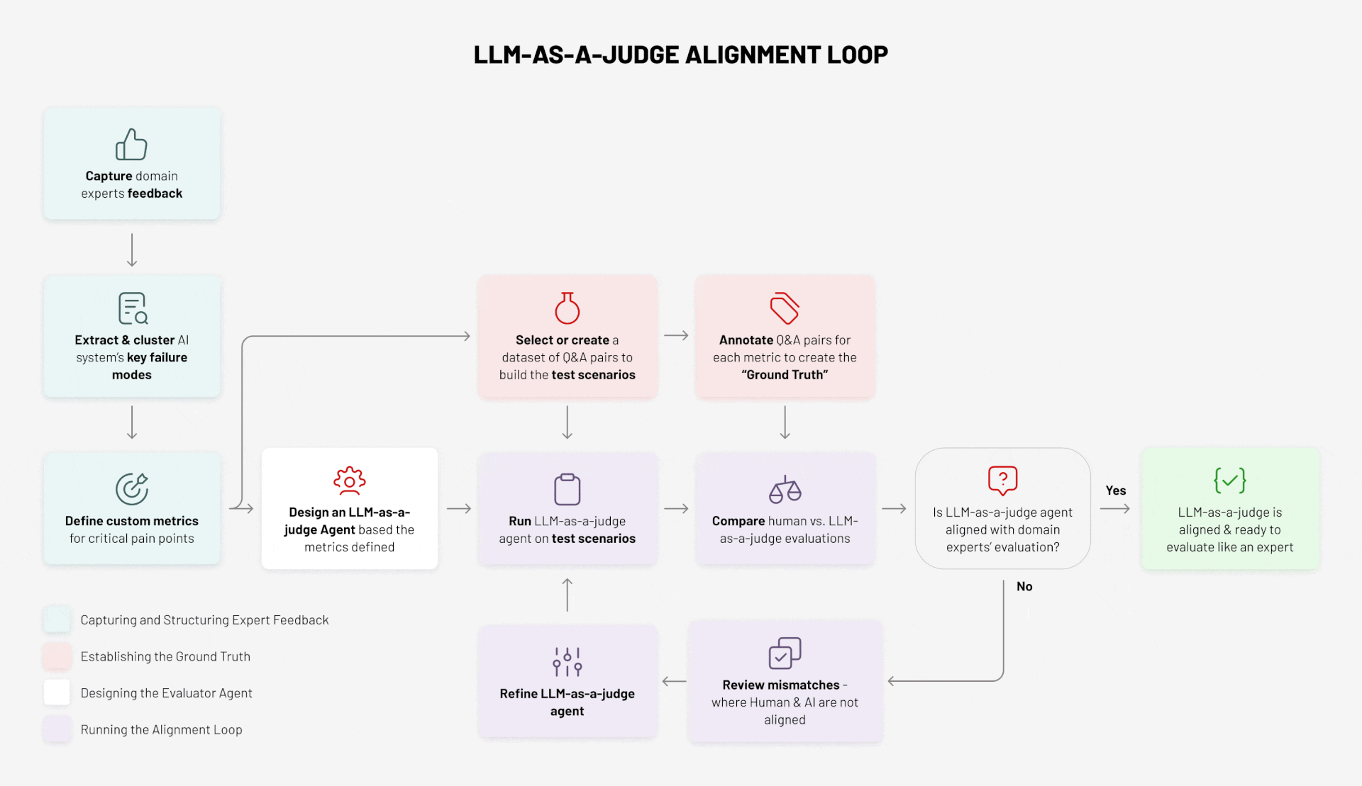 This is where the evaluator agent learns to act like an expert. The process is iterative and continuous.